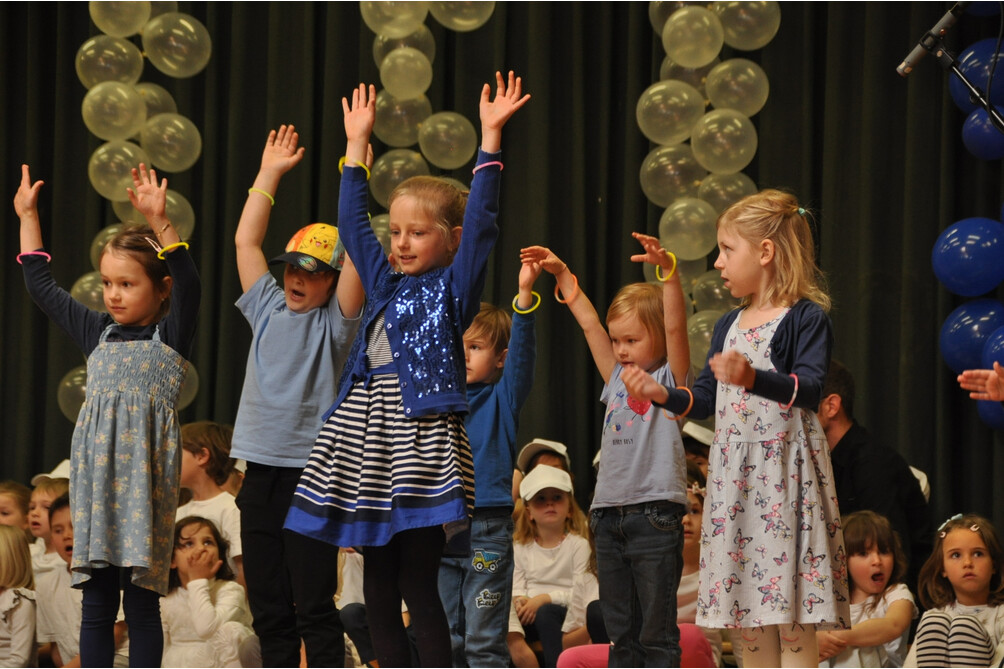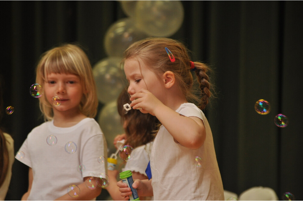 Auf dem Programm stand das Stück „Fremde werden Freunde“ aus der Feder von Reinhard Horn und Rolf Krenzer. Der Inhalt ist zeitlos und aktueller denn je: Ausgrenzung, Anfeindungen, Mauern und Auseinandersetzungen – Themen, die man zunächst nicht mit einem Kindermusical in Verbindung bringt. Doch das Stück erzählt die Geschichte von Gelbland und Blauland: aufgrund von Konflikten fliehen die Gelbländer nach Blauland. Anfangs willkommen, werden sie bald ausgegrenzt und eine Mauer wird errichtet. Doch Seifenblasen, die diese Mauer überwinden, sind der erste Schritt zur Versöhnung – und schließlich wird die Mauer eingerissen und aus Fremden werden Freunde.