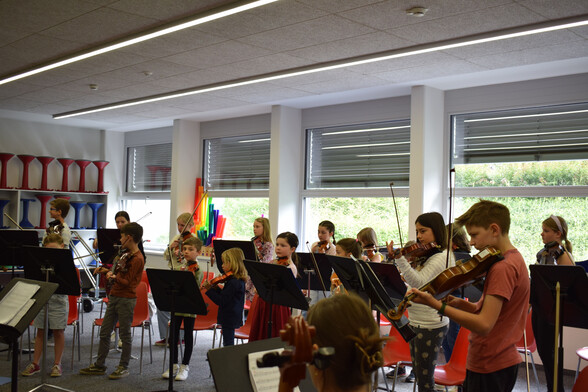 30 Schülerinnen und Schüler hatten sich zum Streichertag am 25. Mai an der Musikschule Blumenegg Großes Walsertal angemeldet und fieberten schon seit Wochen auf diesen Tag hin.