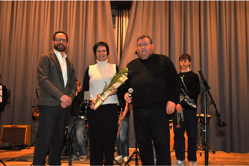 Ein besonderer Moment des Abends war die Verabschiedung von Birgit Müller, die seit der Gründung der Musikschule im Jahr 2002 mit großem Engagement zum Erfolg der Schule beigetragen hat. Obmann Bürgermeister Willi Müller und DIrektor Christoph Ellensohn bedankten sich herzlich und überreichten ein Präsent des Lehrerteams und der Musikschule.
