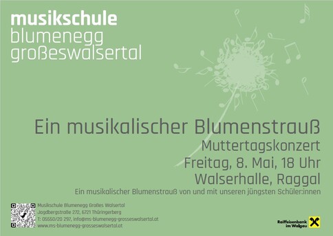 Dieses Jahr veranstaltet die Musikschule Blumenegg Großes Walsertal nach langer Zeit wieder ein Muttertagskonzert. Ein musikalischer Blumenstrauß für alle Mütter – dargeboten von den jüngsten Schülerinnen und Schülern unserer Musikschule.